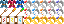 The sprites used here are (mostly) self made and the following sprite sheet is used for the tutorial (upsized, the original sized image is here):